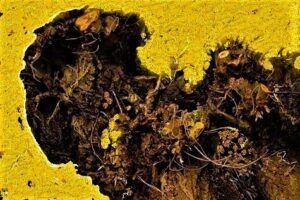 “Pacha Mama” (Moeder Aarde), Triplicate, Photography with Digital Paint on Paper – Total Size: 1.35 m.x 90 cm. 2020: